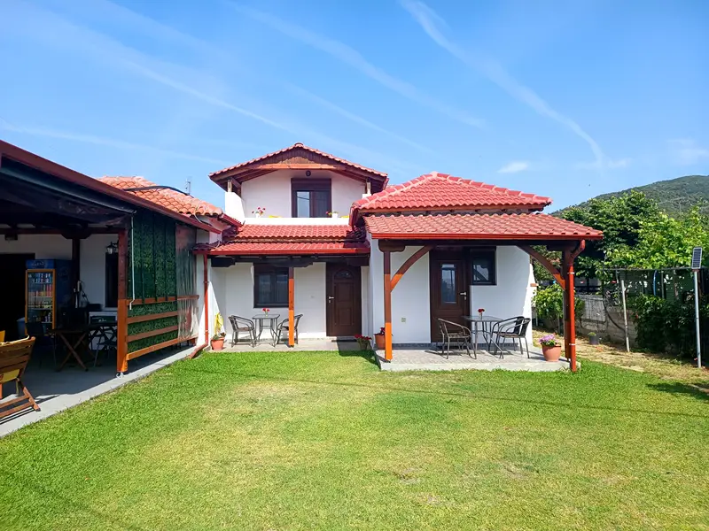 Toula’s House is a charming, family-run rental property located on the beach of Sykia in Halkidiki. It offers two apartments and a studio-attic, all with access to a spacious courtyard equipped with barbecue facilities. The beach is just a few steps away, providing direct access to the sea. Toula’s House is ideal for those looking for peaceful and family-friendly holidays in a welcoming, home-like environment.